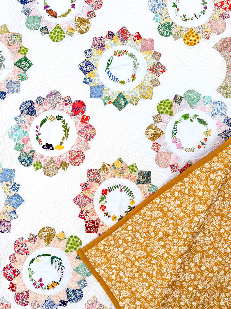 The Alice’s Country Diary Quilt combines the wonderful technique of English Paper Piecing (EPP) with beautiful hand embroidery and appliqué.