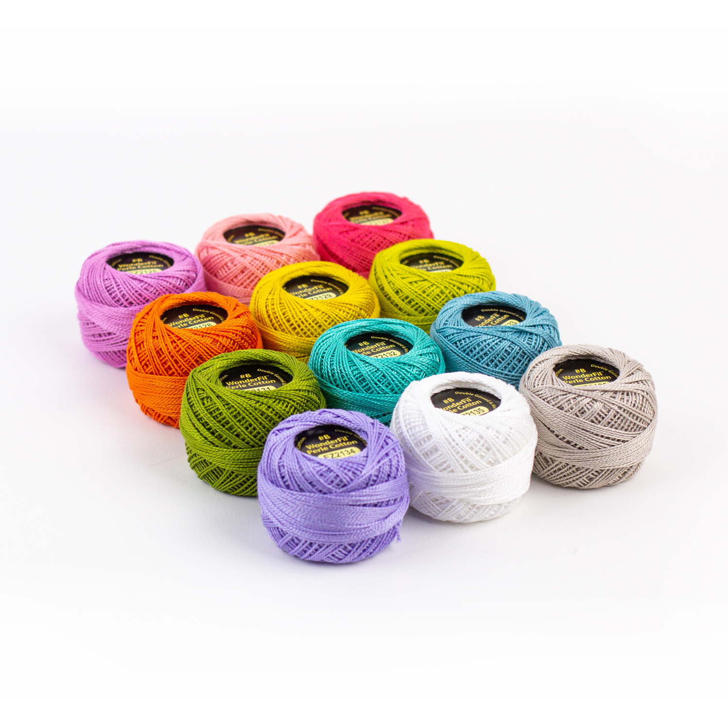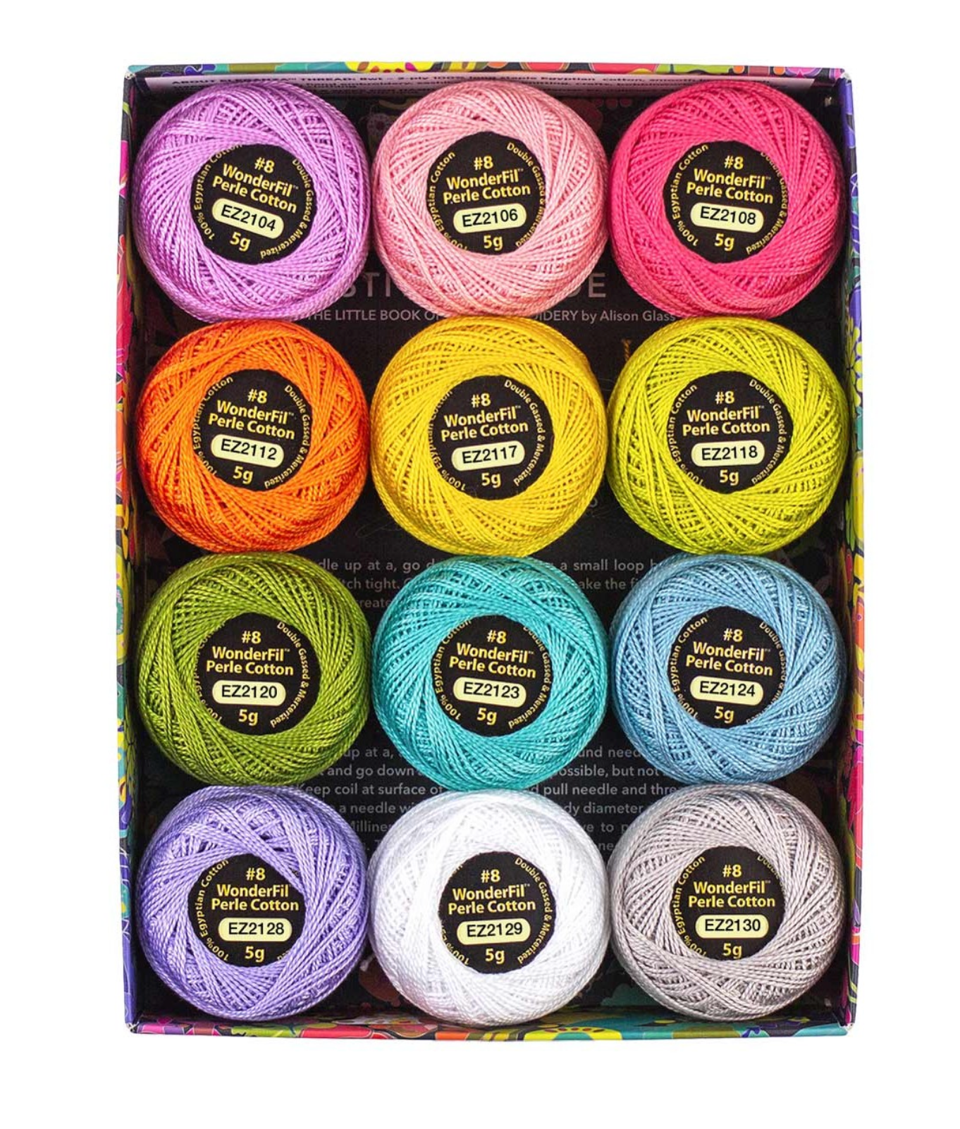This is an amazing collaboration between a legendary designer, Alison Glass, and a renowned Canadian Thread brand, Wonderfil! The Alison Glass collection features 48 brilliant colors of Eleganza #8, sold individually or in 4 lovely boxed sets of 12: Flora, Fauna, Sun and Stars (variegated) .