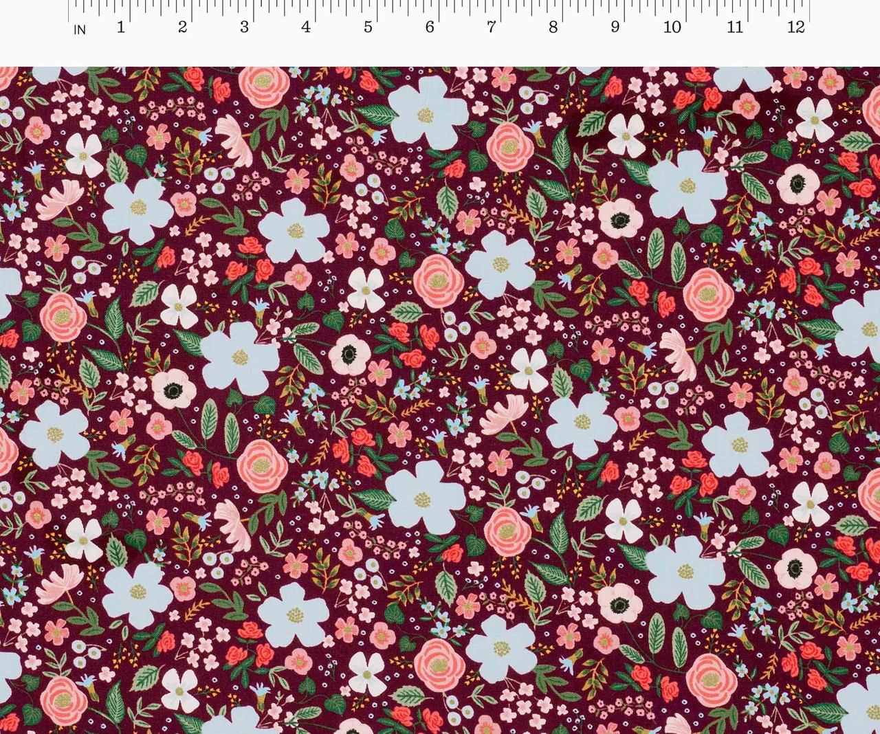 ***End of bolt 11'' (28 cm)*** RIFLE PAPER CO, Garden Party WILD ROSE in Burgundy Metallic
