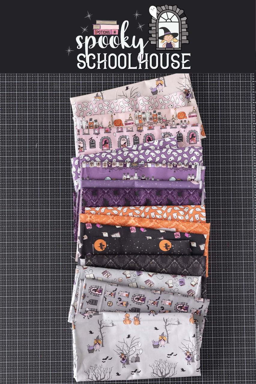 RILEY BLAKE DESIGNS, SPOOKY SCHOOLHOUSE Witch School, Halloween Fabrics