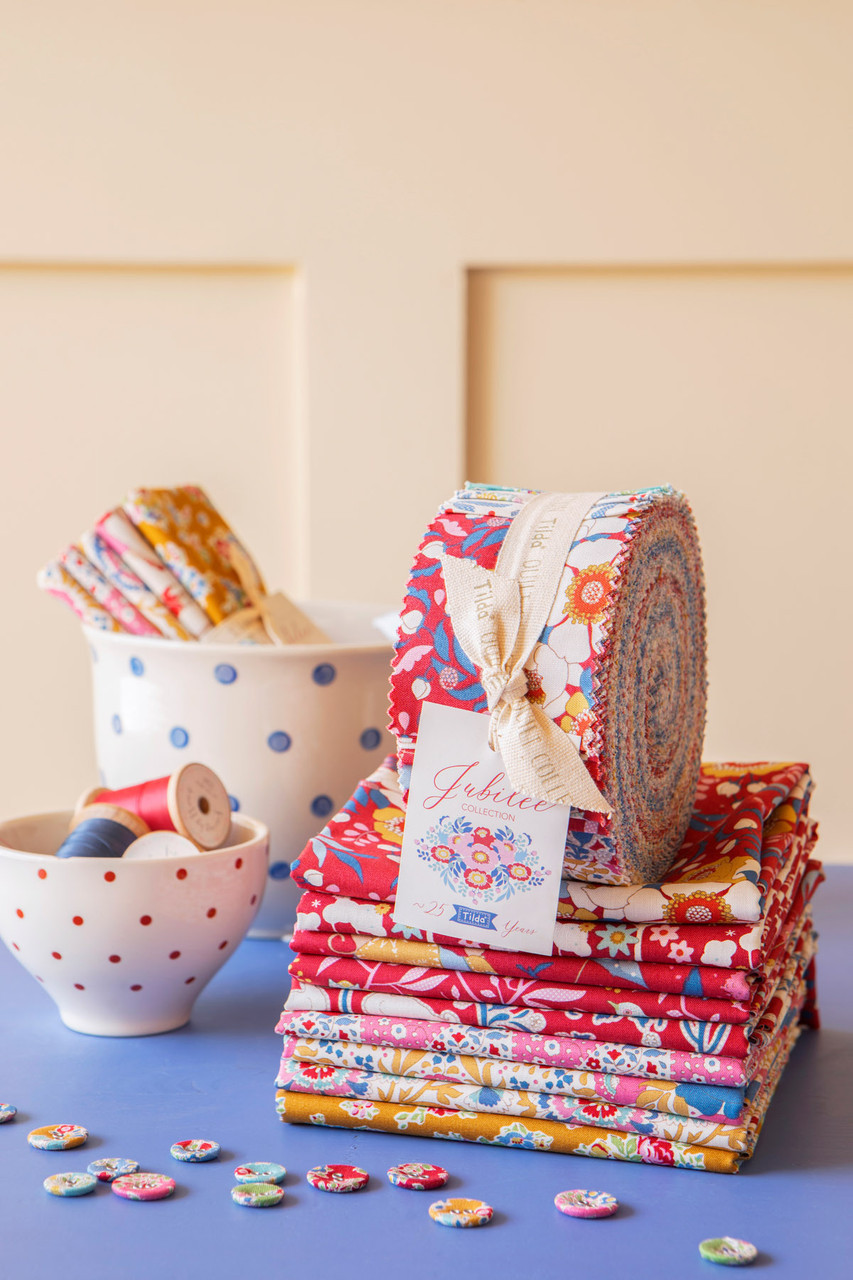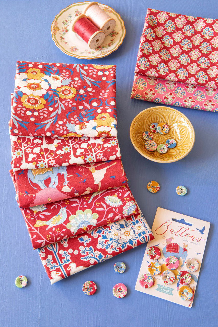 This year, Tilda turns 25 and to celebrate the occasion we have gathered festive fabric designs from different collections over the years to create the colorful Jubilee collection. Perfect for birthday and jubilee celebrations with reds and blues accompanied by teals, yellows and pinks.