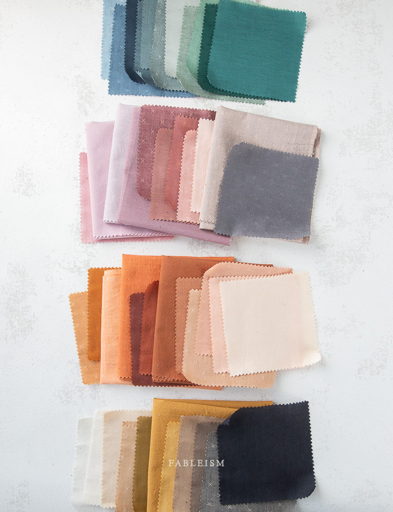 The Sprout Wovens collection by Fableism Supply Co come in the perfect earthy color palette. They are yarn-dyed to bring that depth of color. Picked with the naturalist in mind, their colors were inspired by the earth’s abundant natural beauty. The small woven “x” gives just the right amount of texture to make any quilt or garment interesting while keeping things classic and simple.