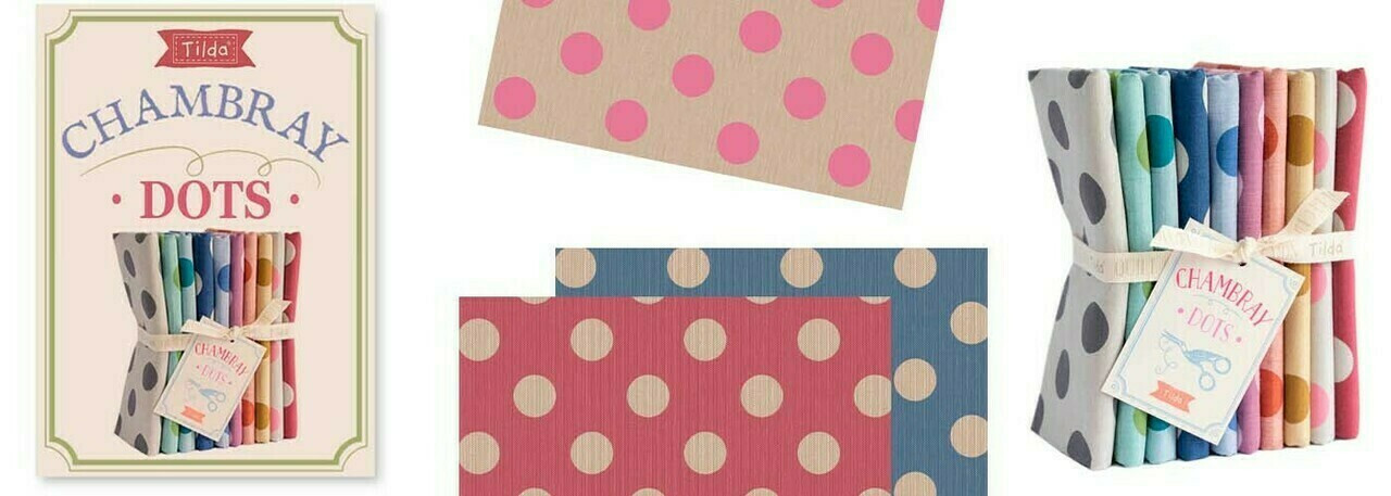 The new TILDA CHAMBRAY DOTS collection for quilts has all the gorgeous touch of the popular TILDA CHAMBRAYS Solids, a lovely high quality woven cotton but with the depth we have with the well known TILDA MEDIUM DOTS in quilting cotton. Bringing the CHAMBRAY to another level !!!