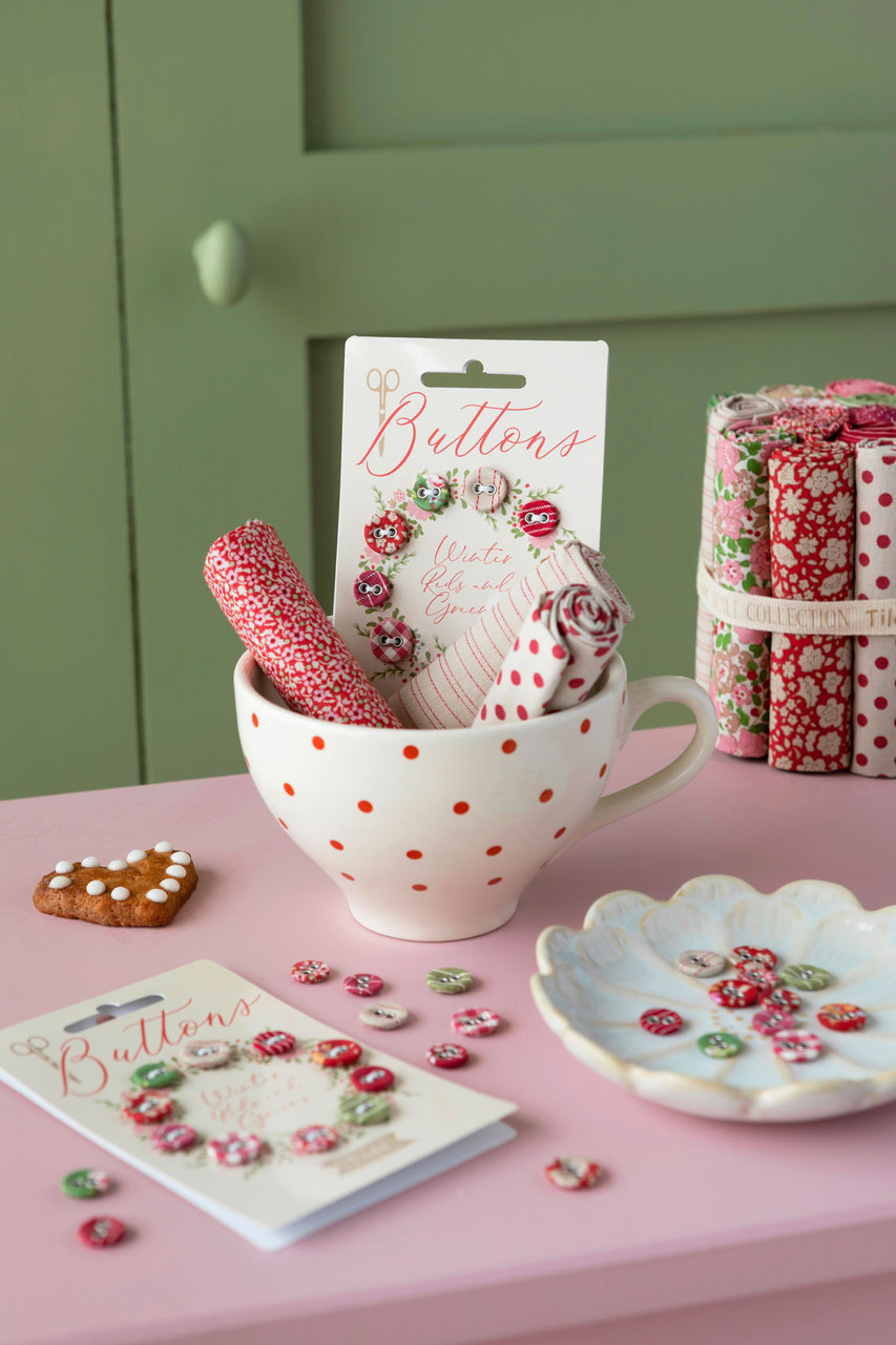 In this CHAPTER 4 we present the Winter Reds and Greens color theme. This colorway contains an array of red fabrics combined with hints of green. In addition to Winter projects, this collection can of course also be useful all year round for any project where red and green fabrics are needed. The small patterns and rustic feel of the woven fabrics are lovely when creating cozy Winter and Christmas projects and inspired motives like apples, holly, geese and a sweet Christmas calendar quilt." ~ Tone Finnanger, TILDA FABRICS