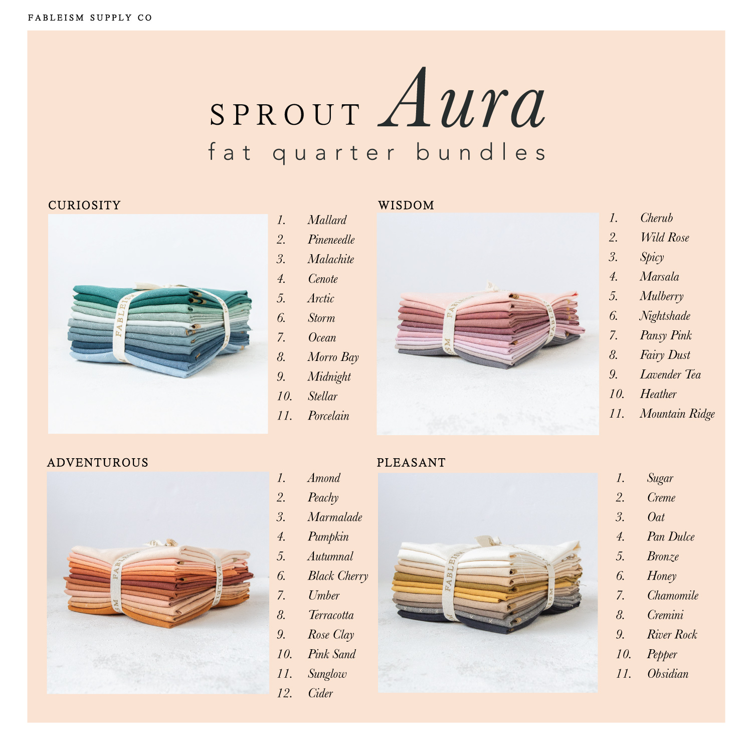 FABLEISM, Sprout Woven AURA PLEASANT, Precut Fat Quarter Bundle of 11 Fabrics