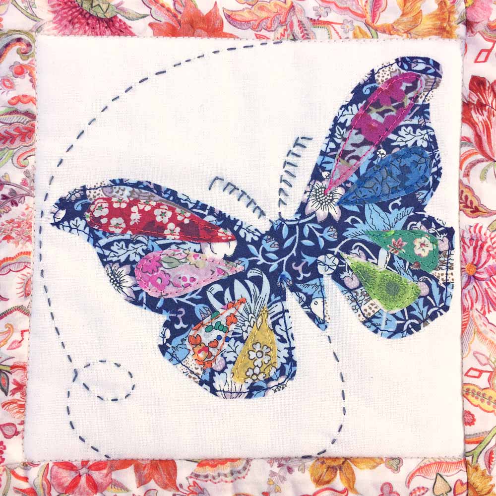Suitable for an advancing beginner sewer, it is constructed using a mixture of techniques which will help to enhance your sewing skills. English Paper Piecing (EPP) is a traditional hand sewing quilting method which is simple and quite addictive! The raw edge appliqué technique may be completed either by hand, or with a sewing machine, the choice is up to you. It does require a bit of concentration, but is easily mastered and there is no end to the items you can make with this method of appliqué! Patchworking is the ‘classic’ method of quilting and this will be a great introduction to the technique. Decorative stitching adds extra interest and details to the design of the blocks.