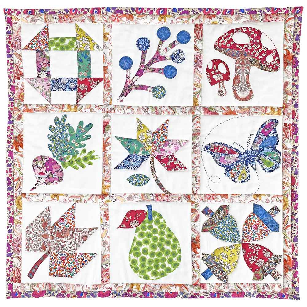 This Autumnal Mini Sampler Quilt is a celebration of the mellow fruitfulness of the season, using evocative, richly coloured Liberty Fabrics.