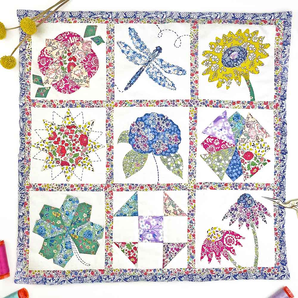 This Summer Mini Sampler Quilt is a great way to explore a selection of summer-inspired shapes and designs using pretty Liberty Fabric. This vibrant summer mini sampler quilt kit is suitable for an advancing beginner sewer and is constructed using a mixture of techniques to help build and expand your sewing skills.