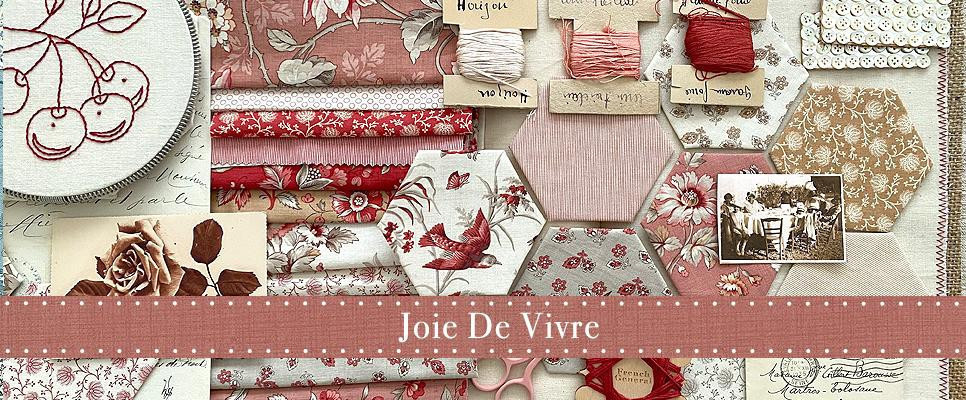 Joie de Vivre is a soft and subtle interpretation of early 19th century French prints and is evocative of an old French parlor room or a lady's dressing room. The larger multi-colored floral prints lend themselves to floral fussy cutting - a wonderful way to create pretty appliqués and hexagons. Out of all of the collections we have done in the past fifteen years with Moda, this is our very favorite and it will blend perfectly with our past collections.