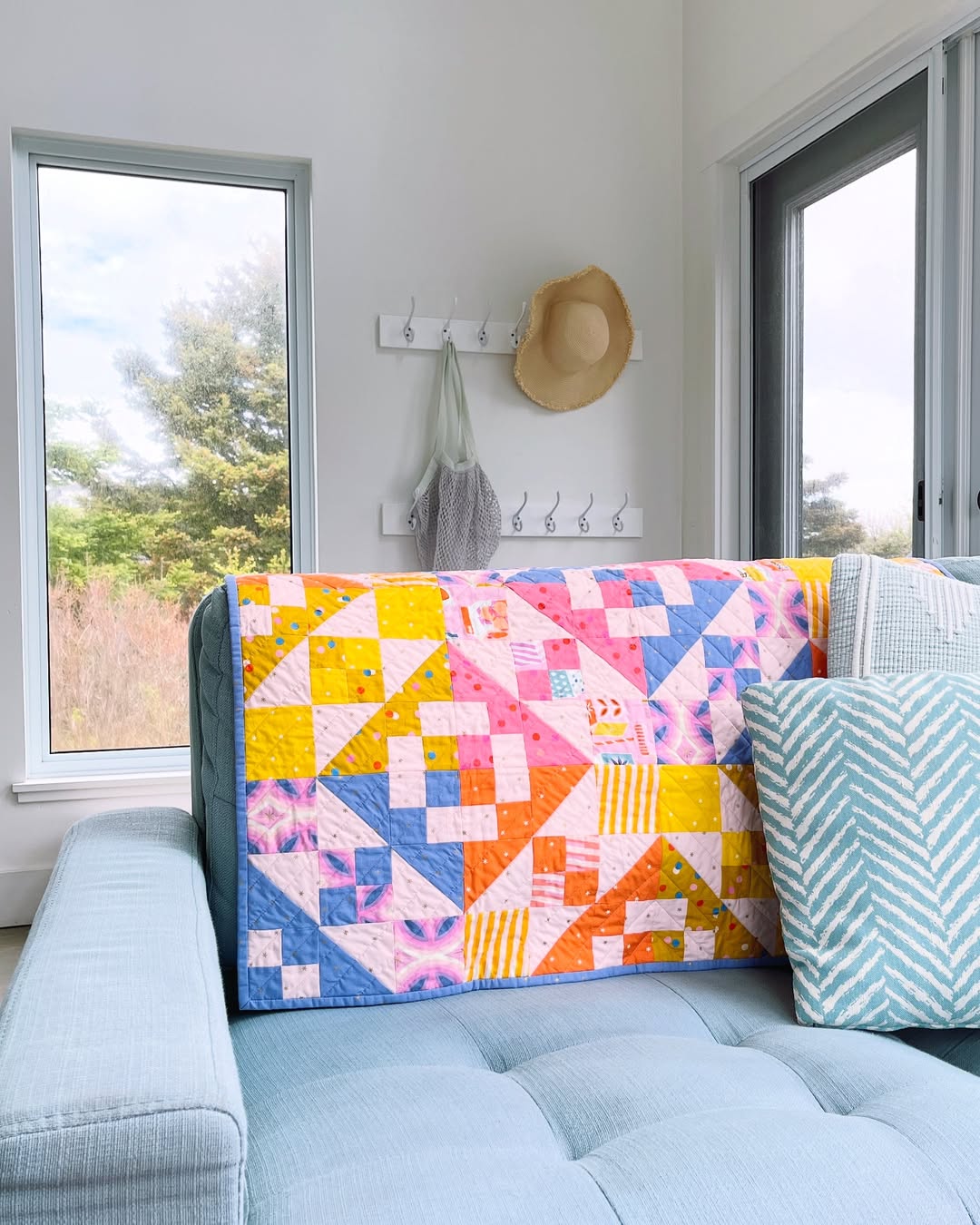 Sugarcubes is a vintage-inspired quilt pattern designed to play with colour and volume. Start with a light background, then choose a range of fat quarters paired by colours of different value, and voila! This is a traditional patchwork pattern and a great stash buster that incorporates 4-at-a-time HSTs to help make it a quicker sew.