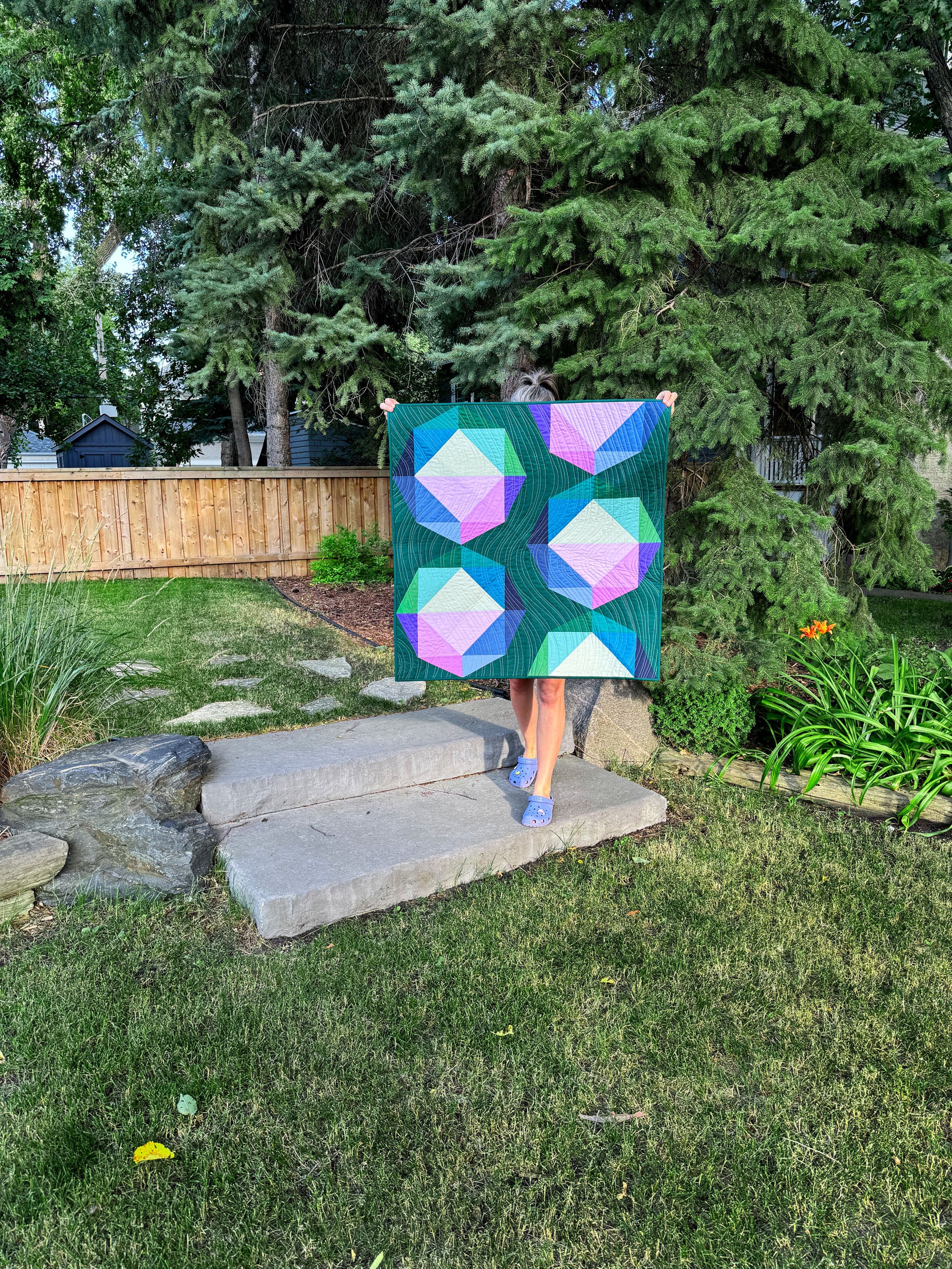 This modern, original quilt pattern is perfect for intermediate quilters! This oversized, 18" block-based pattern features flying geese and half rectangle triangles. Includes fabric requirements for a bonus 2-colour layout!