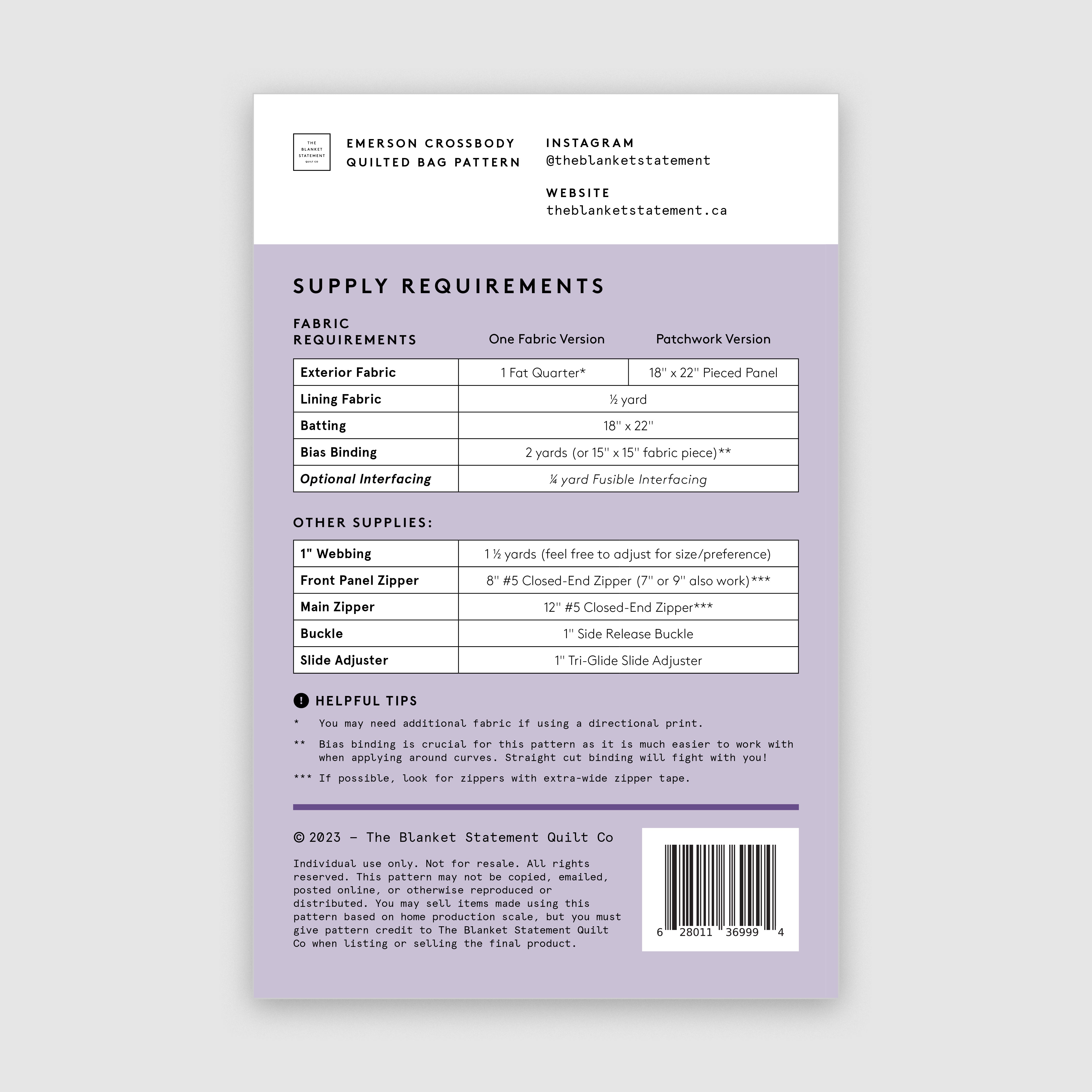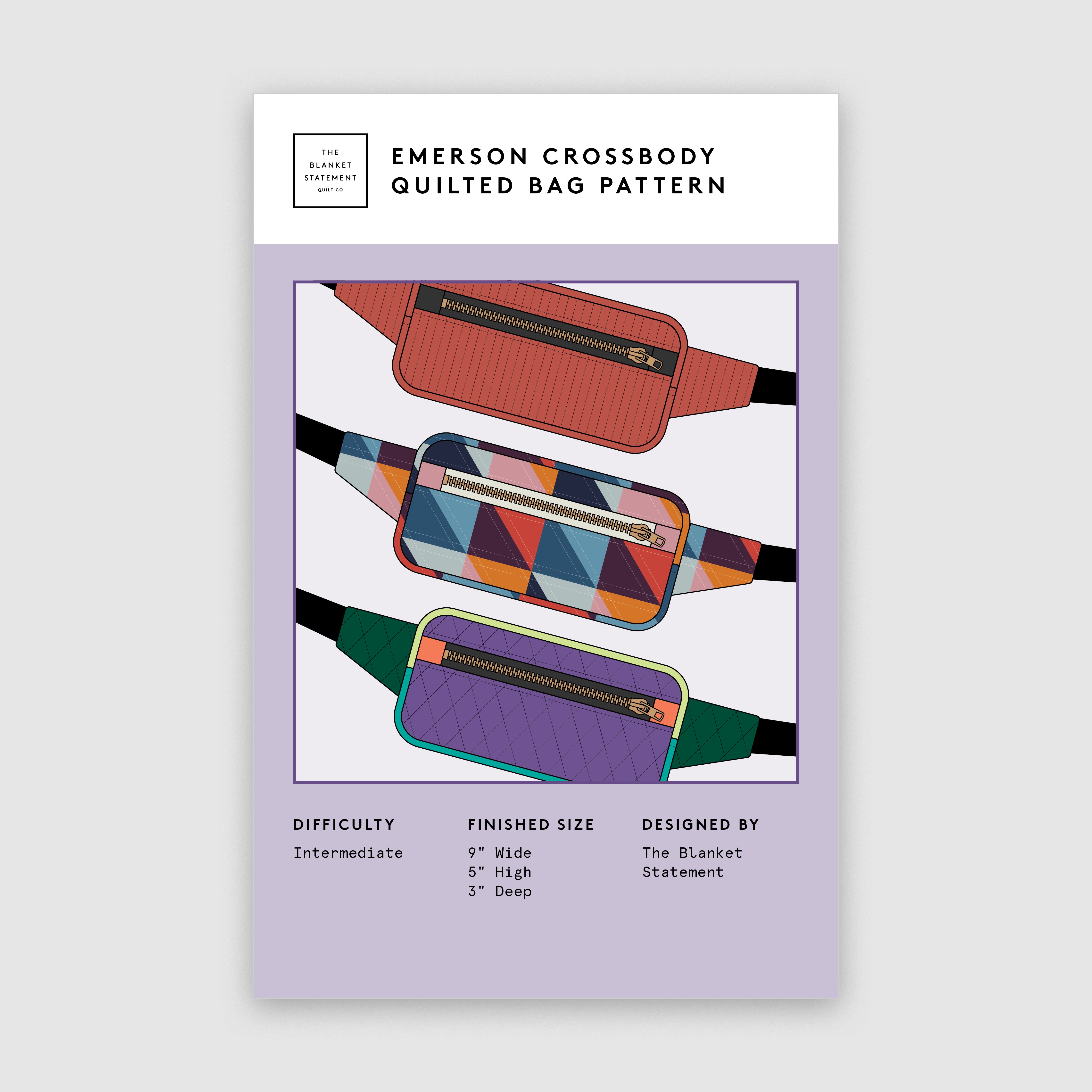 This listing is for a PAPER copy of the EMERSON CROSSBODY Bag. Pattern printed using high quality paper. It is enclosed in a clear bag.