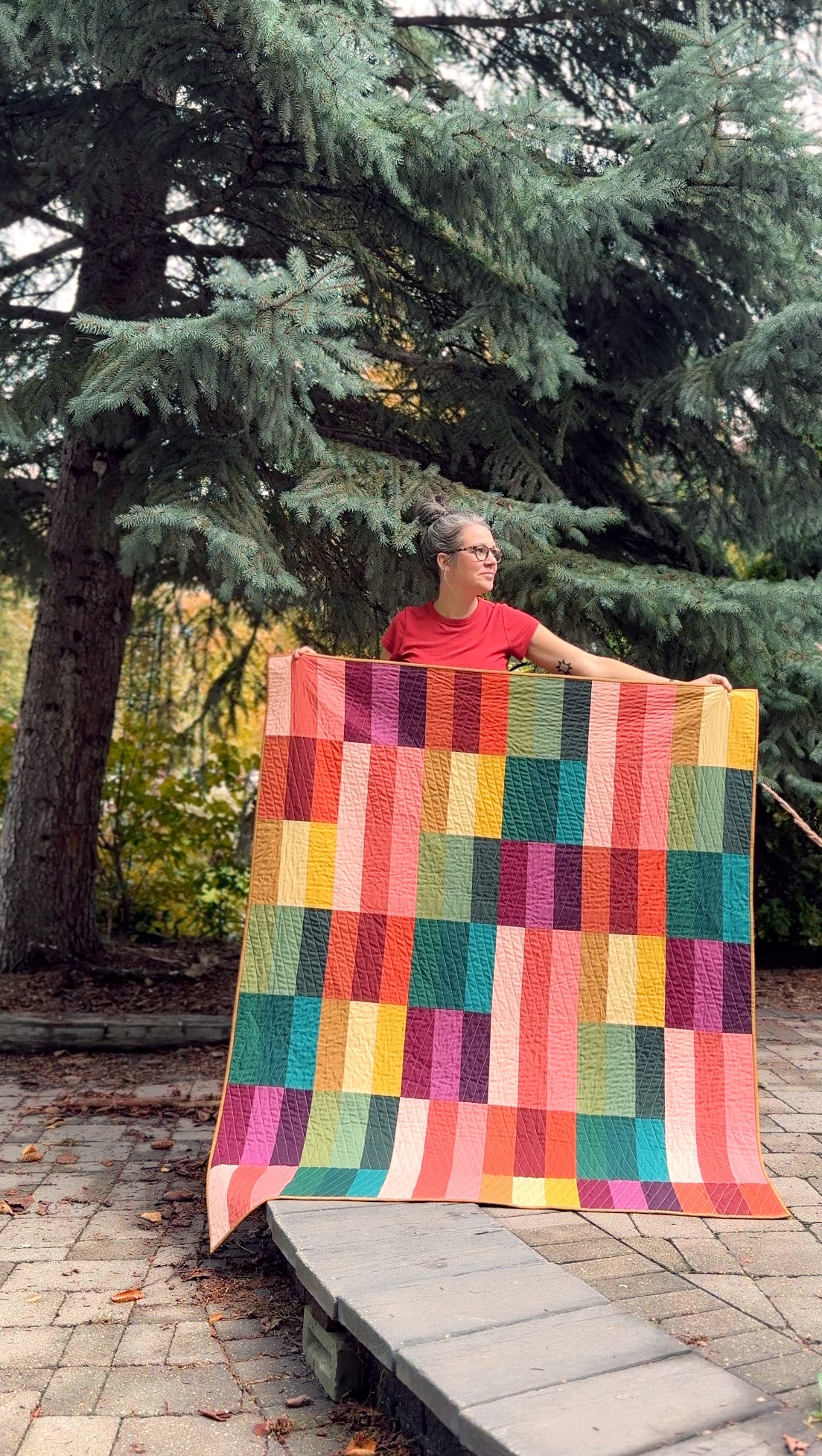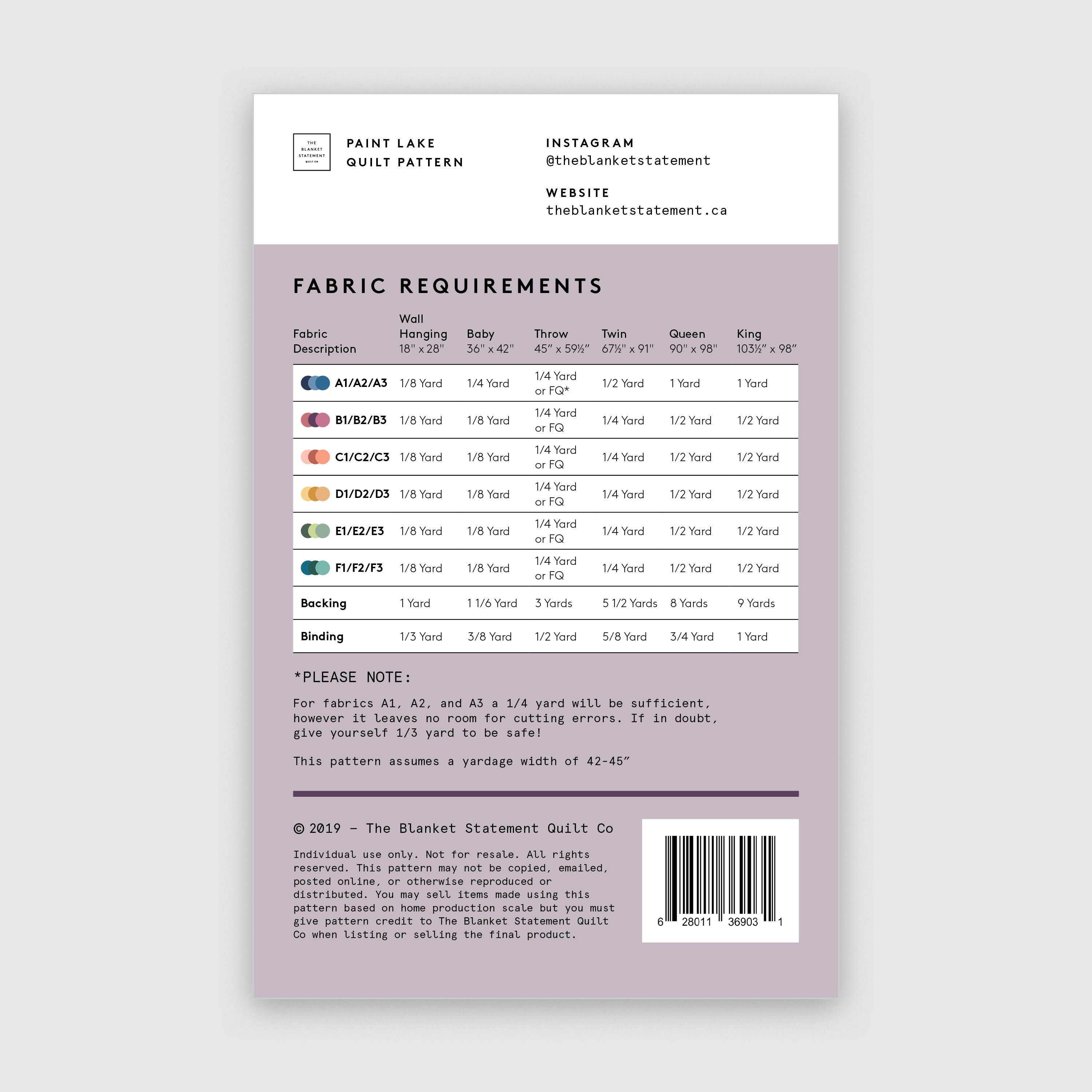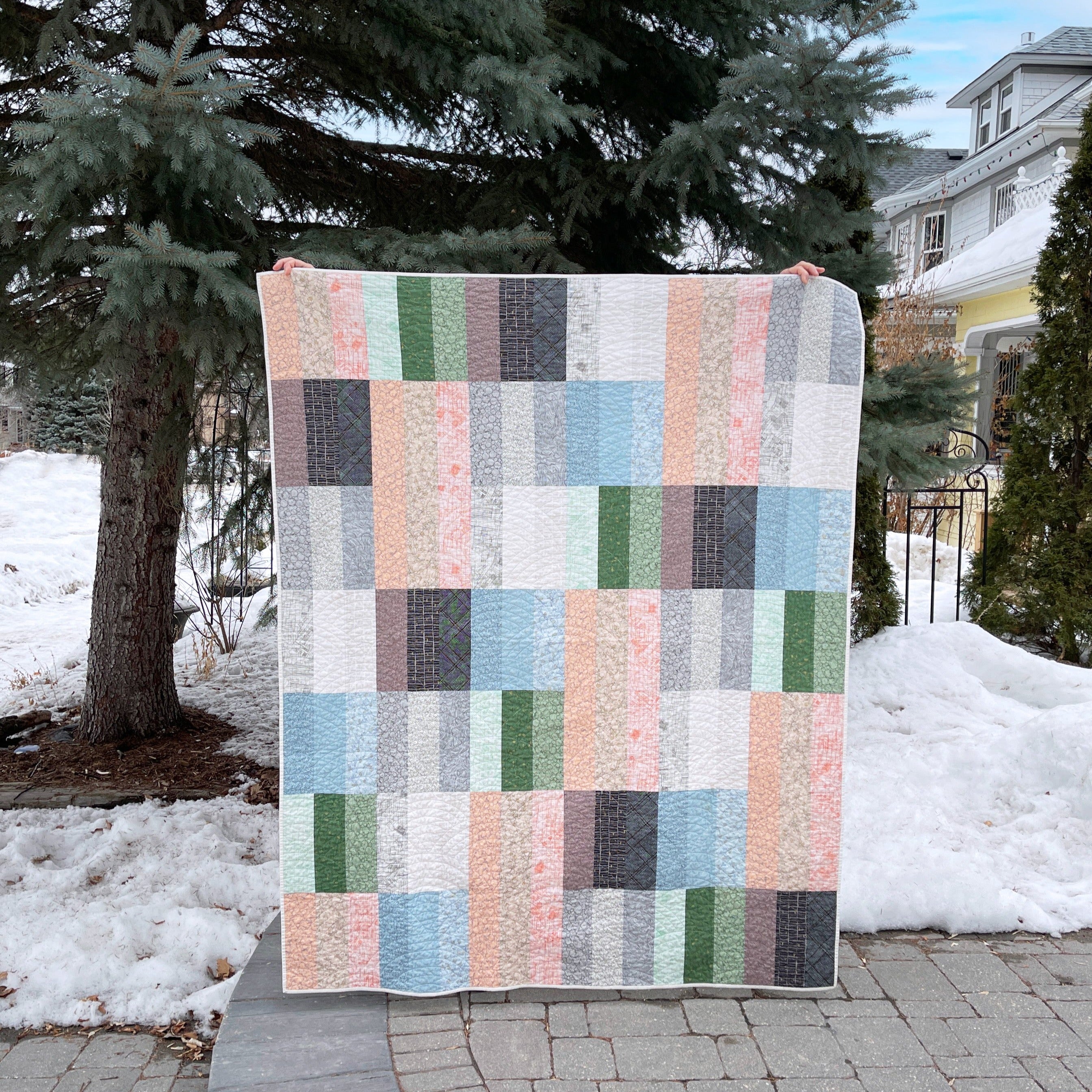 The PAINT LAKE Quilt was born after a trip Erin with her mother did from a local quilt shop, where she grabbed 18 random satured Kona solid cottons she loved, as explained on her blog post here. Erin then explored a few pattern versions until she found the perfect layout that would become the PAINT LAKE Quilt we know!