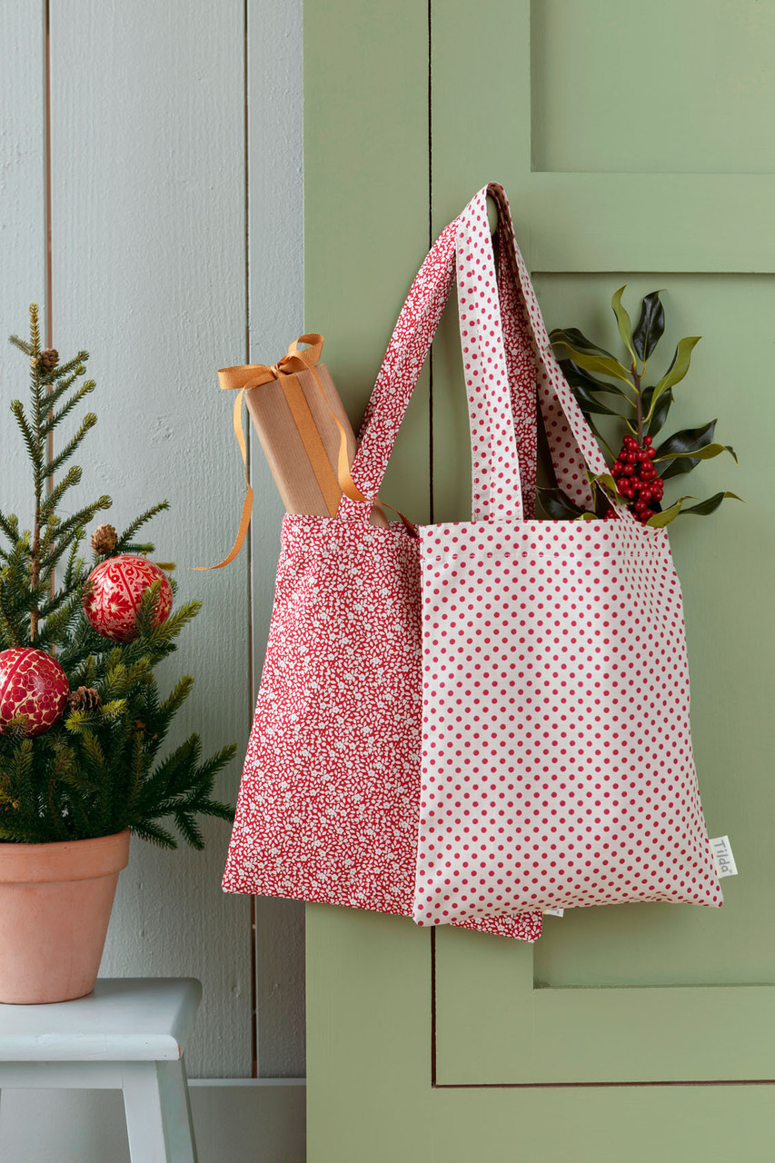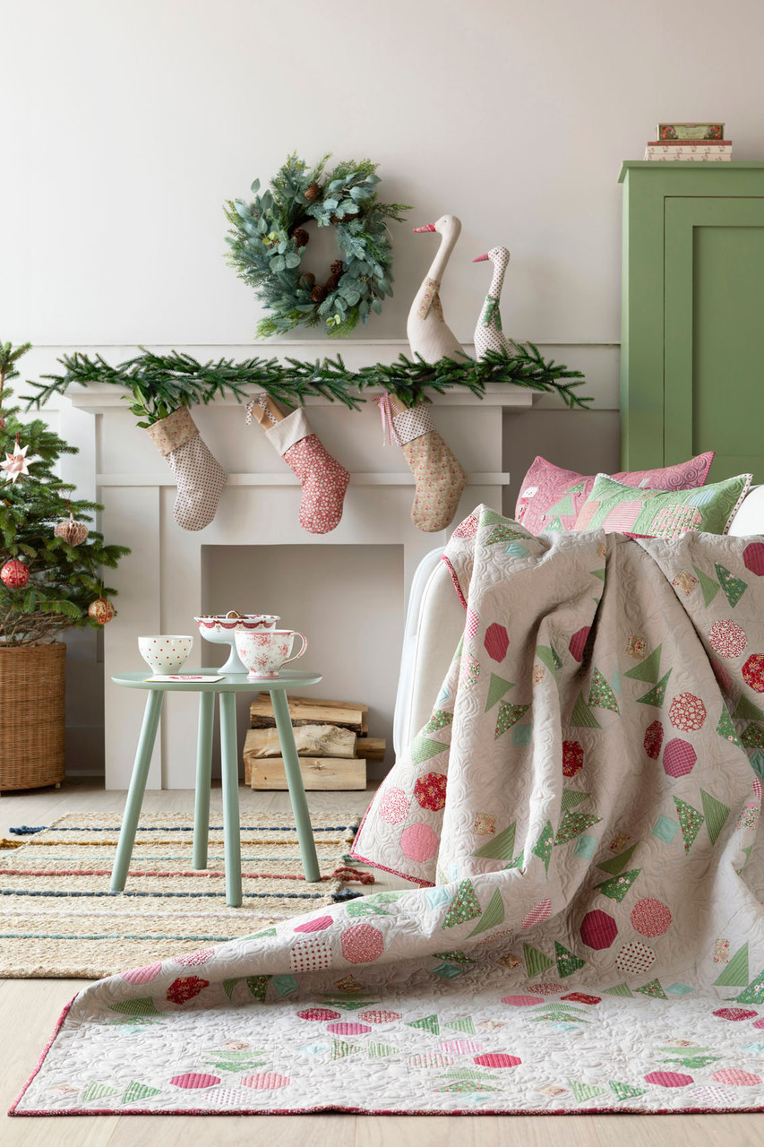 In this CHAPTER 4 we present the Winter Reds and Greens color theme. This colorway contains an array of red fabrics combined with hints of green. In addition to Winter projects, this collection can of course also be useful all year round for any project where red and green fabrics are needed. The small patterns and rustic feel of the woven fabrics are lovely when creating cozy Winter and Christmas projects and inspired motives like apples, holly, geese and a sweet Christmas calendar quilt." ~ Tone Finnanger, TILDA FABRICS