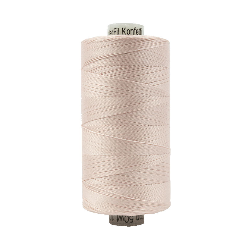 Konfetti™ 50wt cotton thread is a 3-ply, double-gassed*, and mercerized Egyptian cotton. It has a soft, clean, lustrous finish. Free from wax or coatings, it’s low-lint, making it ideal for quilting and longarming. Available in 120 solid colors.